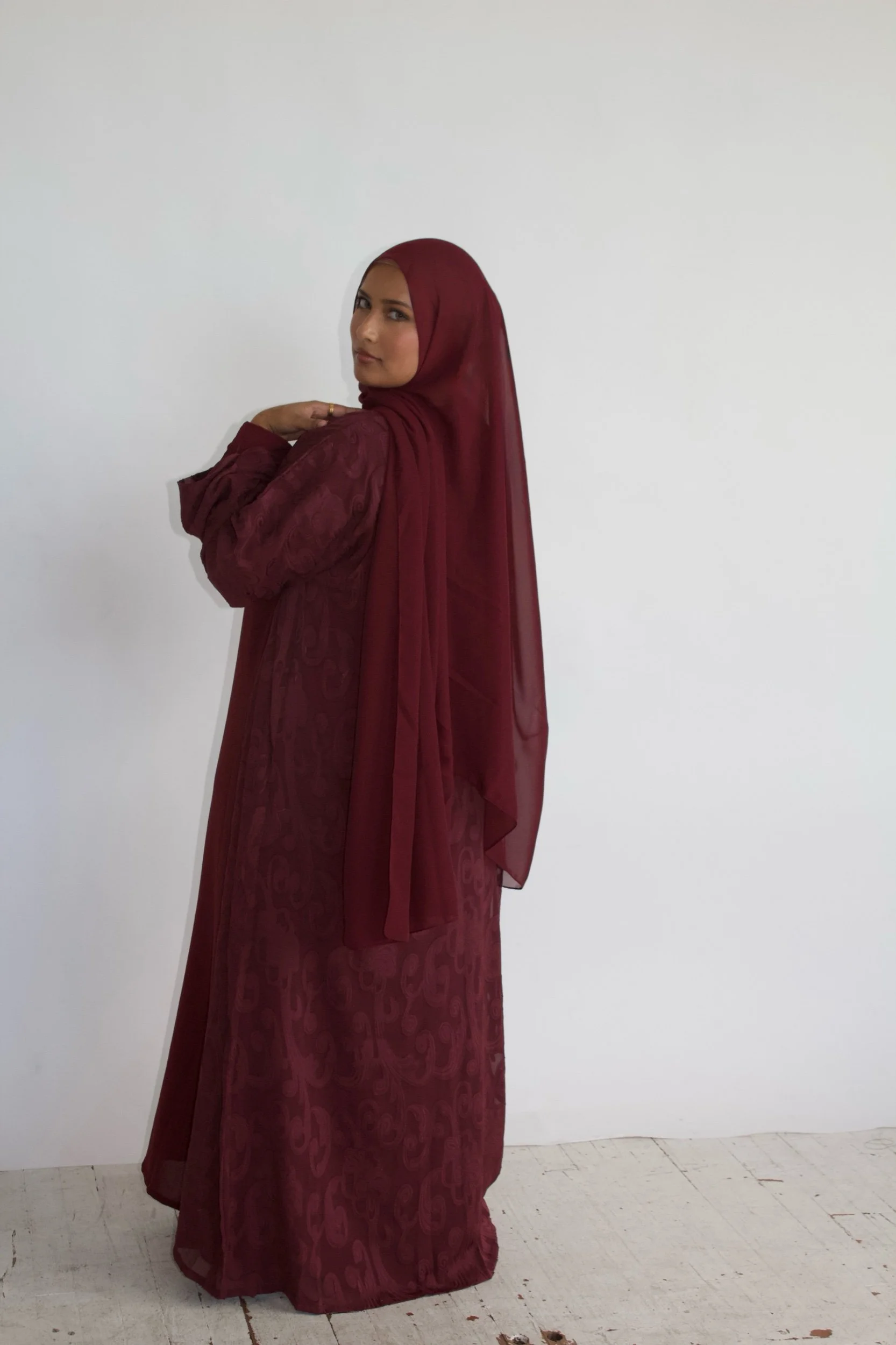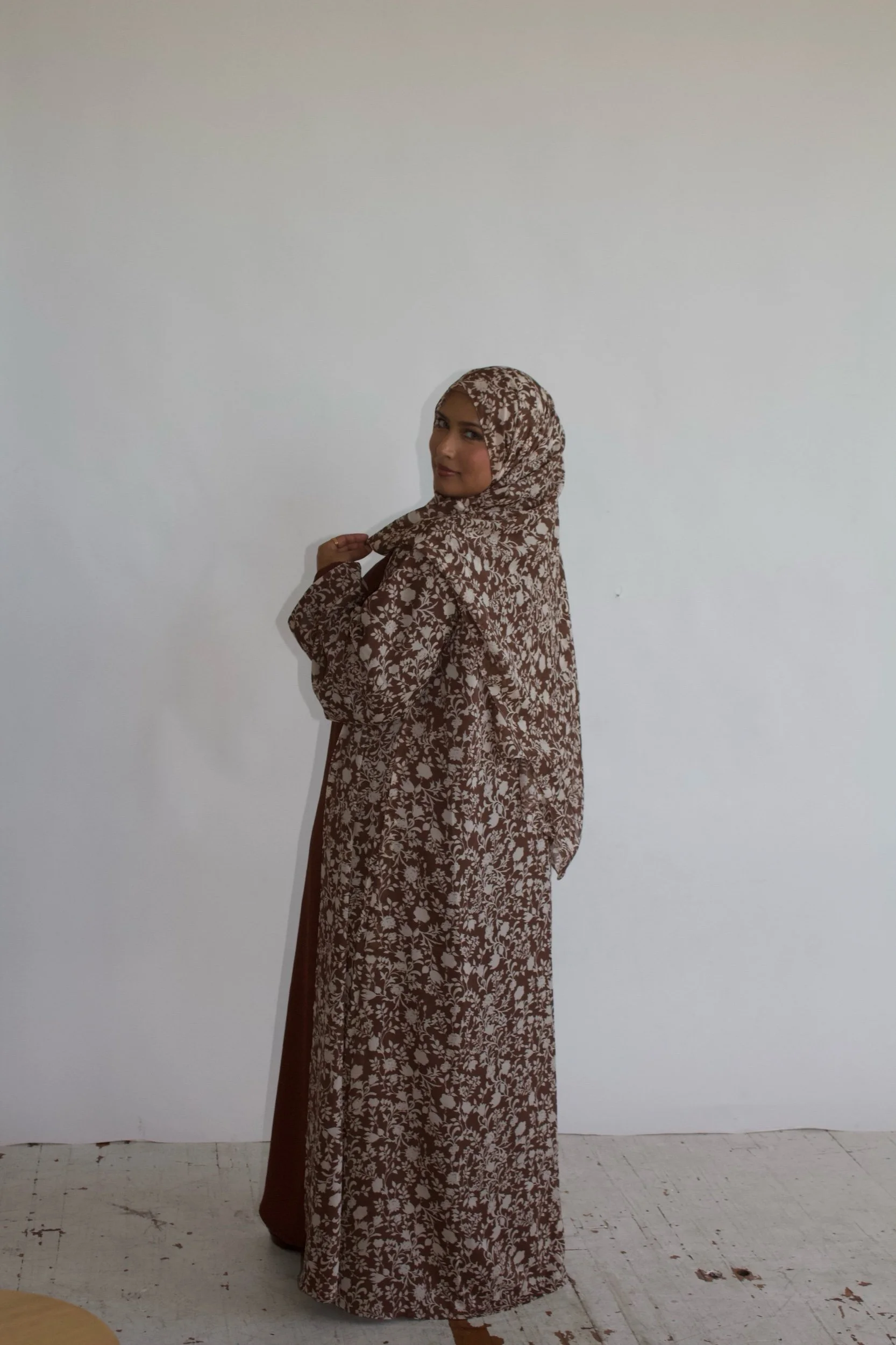Abaya › Nisa (Beige) Image 1 of 4 Image 2 of 4 Image 3 of 4 Image 4 of 4 Nisa (Beige) $68.00 Size: 50 52 54 56 58 Quantity: Purchase Added! You Might Also Like Autumn Bloom $65.00 Nisa (Sapphire) $65.00 Midnight petals $65.00 Nisa (Maroon) $68.00 Basma $65.00
